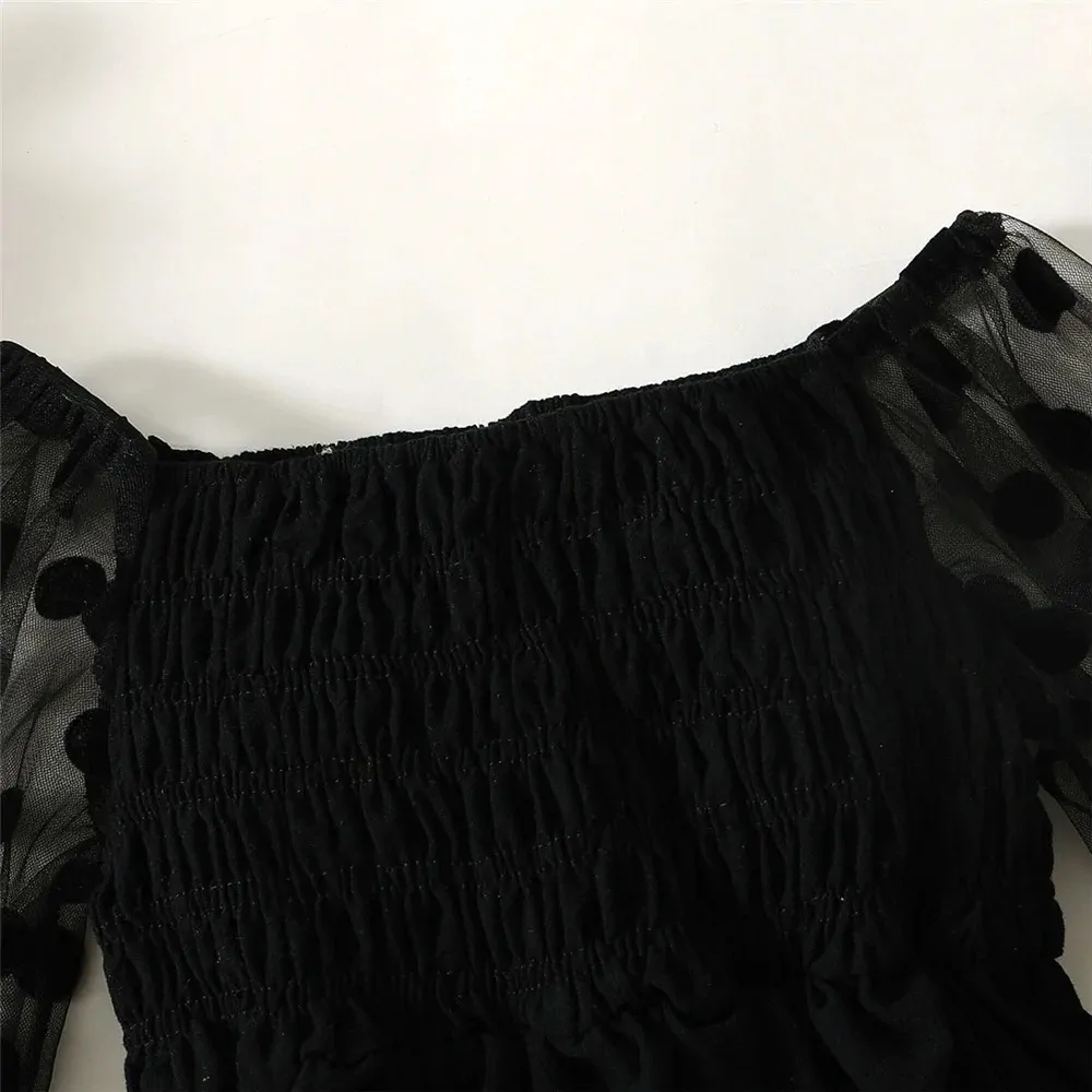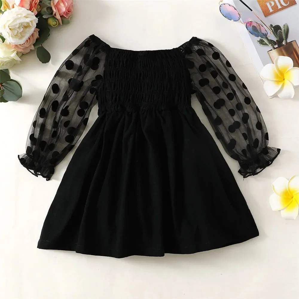 الصفحة الرئيسية اثاث فستان بناتي أسود شبكي بأكمام